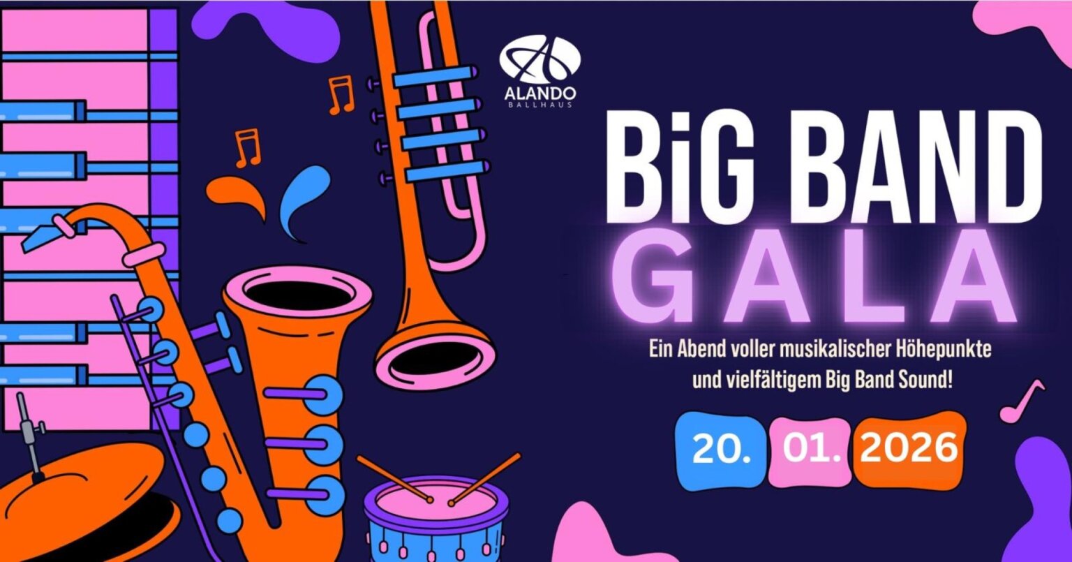 Nach der erfolgreichen Premiere im Januar 2025 kehrt die Bigband-Gala ein Jahr später ins festliche Ambiente des Alando Ballhaus zurück!