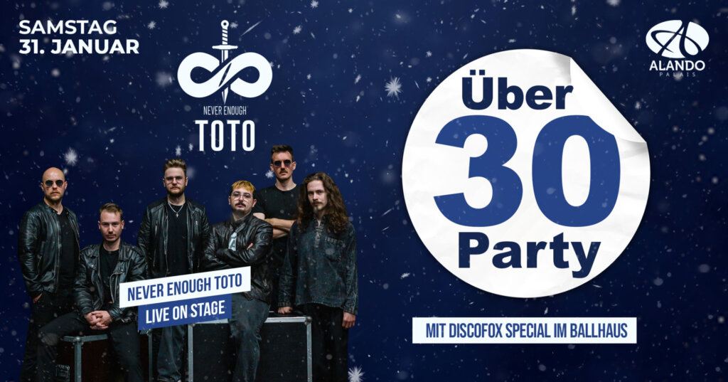Osnabrücks Partyserie Nummer 1 dreht wieder auf! Mit Entertainment auf bis zu 7 Areas ist die zweite Ü30 im Januar wieder on ‼️ ✨ Highlights der Nacht: • Getränkeempfang zum Start • Discofox Special im Ballhaus • Live im Palais: Never Enough – die Toto Tribute Band mit legendären Hits wie „Africa“, „Hold […]