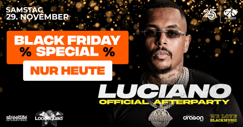 Die legendäre WE LOVE BLACKMUSIC kommt zum 1. Mal zu uns ins Alando! 14 JAHRE WE LOVE BLACKMUSIC JUBILÄUM ‼️DEUTSCHRAP SUPERSTAR LUCIANO LIVE ON STAGE‼️ Gala Edition bedeutet, dress to impress! Ladies, schmeißt euch in eure schicksten Kleider – Gentlemen wir wollen euch in schicken Outfits sehen! Seit 14 Jahren übernimmt Europas größte Blackmusic […]