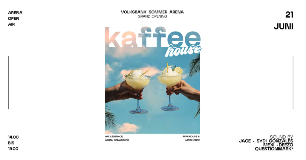 KAFFEE HOUSE OPEN AIR ☀️ Osnabrück, wir drehen auf! Über 2000 Gäste mitten im Herzen der Stadt Osnabrück – das wird kein Event, das wird ein Erlebnis! In Zusammenarbeit mit dem Alando Palais! Am Ledenhof – VOLKSBANK SOMMER ARENA 21. Juni 2026 ⏰ 14:00 – 19:00 Uhr Open Air unter […]